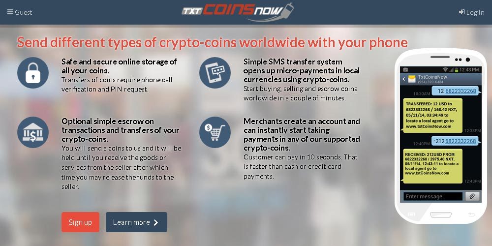 TxtCoinsNow.com provides a simple crypto-coin payment solution that works uses cell phone text messages to transfer crypto-coins using a simple text message. This patent-pending payment solution is targeted for users who typically pay with cash and want to buy items online, send funds worldwide to family, or pay bills without travel and paying with cash.